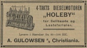Gulowsens motorfabrik leverer foruten den lille èn-cylindrede 4 hk. baatmotor Lillegrei, ..