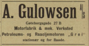A. Gulowsen produserte en tid forgassere til bensinmotorer.