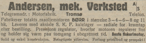 Telegramadresse: Motorfabrik. Stiftet 1921 i Tromsø av Carl N. Andersen. Andersen og familie bodde i Otto Sverdrups gate 5 i Tromsø, som de eide fra 1924 og minst til 1940. Han hadde jobbet ved Gøtaverken og en periode i USA. På folkemunne ble Carl kalt Børr-Andersen. Andersens mek. verksted & skipsverft ble kjøpt opp av Brødrene Isaksen AS under 2. verdenskrig.