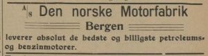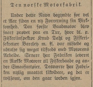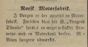 Notis om Norsk Motorfabrikk fra Bergens Tidende 1904
