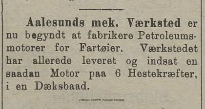 | nåværende | 26. jan. 2018 kl. 22:52 | 420 × 224 (28 KB) | Toro Andersen (diskusjon | bidrag) | Ålesund Mekaniske Verksted |