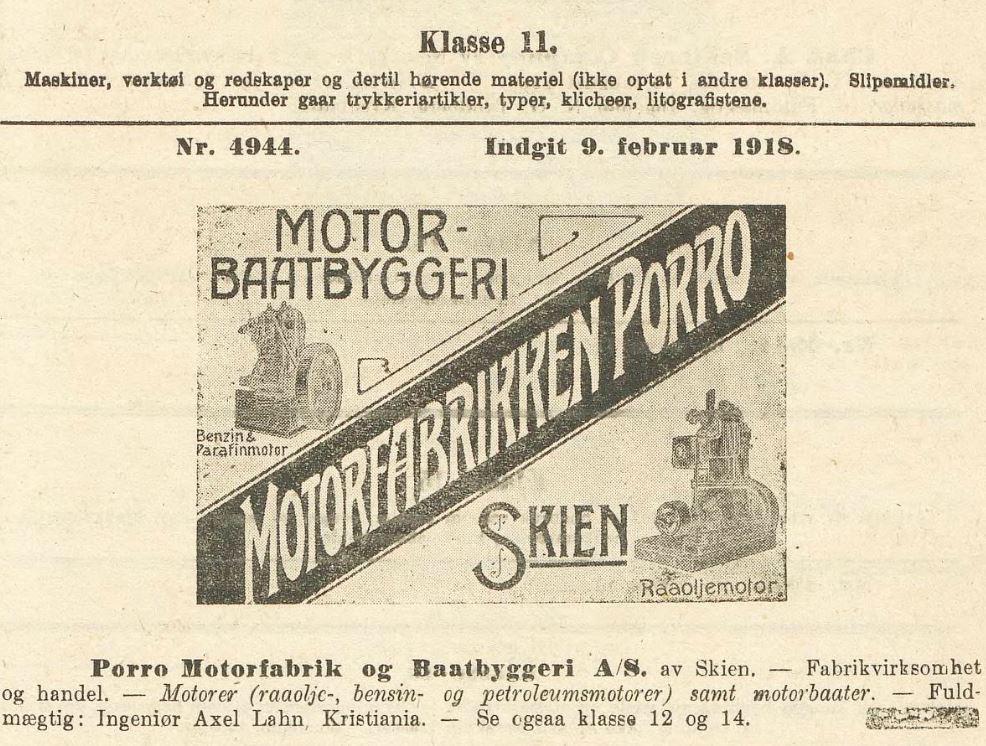 Fil:1918 Porro Varemerke klasse 11 innvilget.jpg