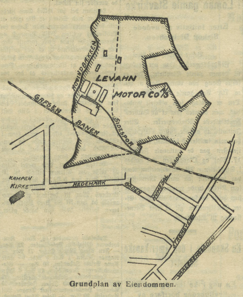 Kart over Levahn motorfabrikk 1922