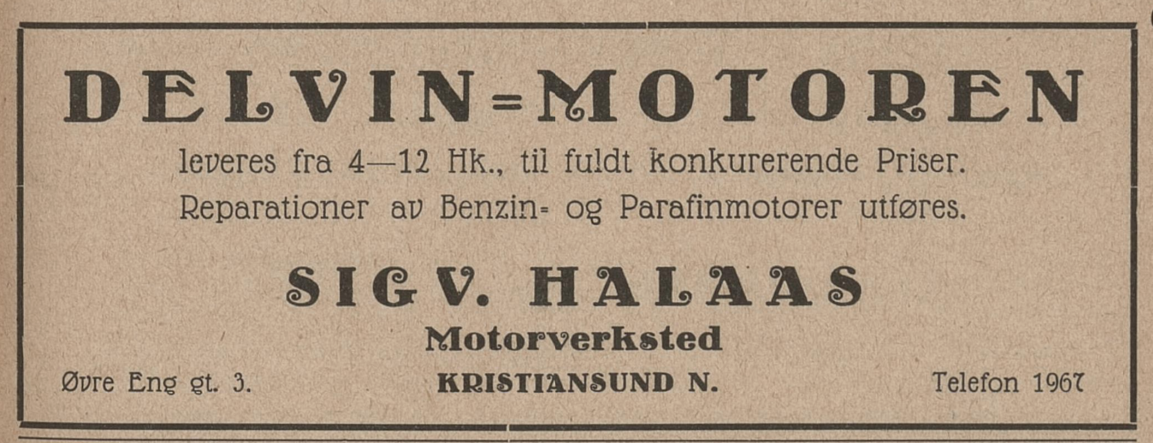Delvin motoren Sigv. Halaas motorverksted