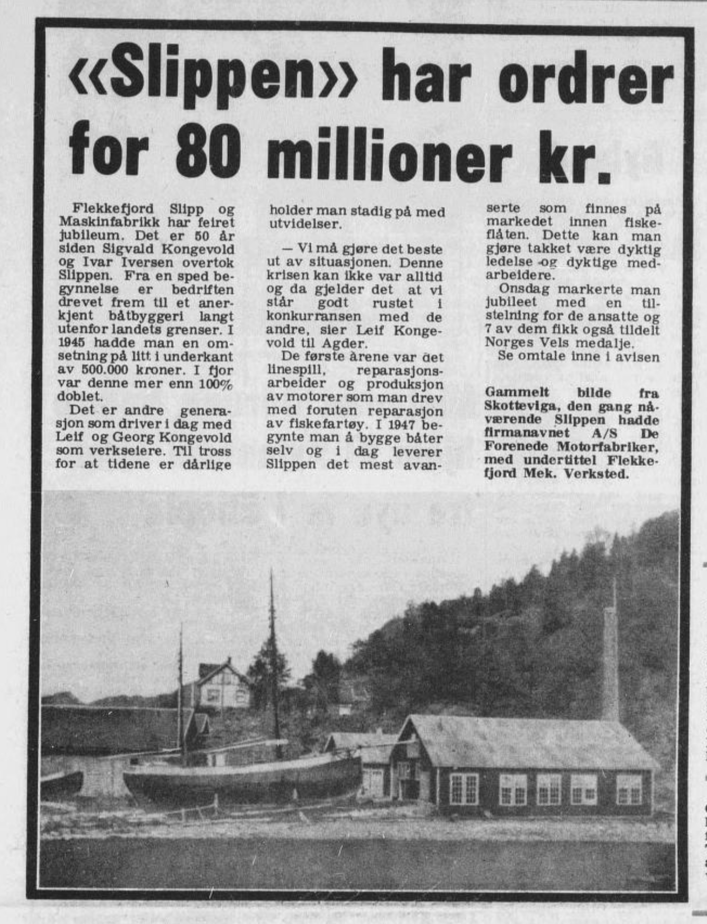 Notis i Agder om navn på bedriften. Flekkefjord Slip og Maskinfabrikk