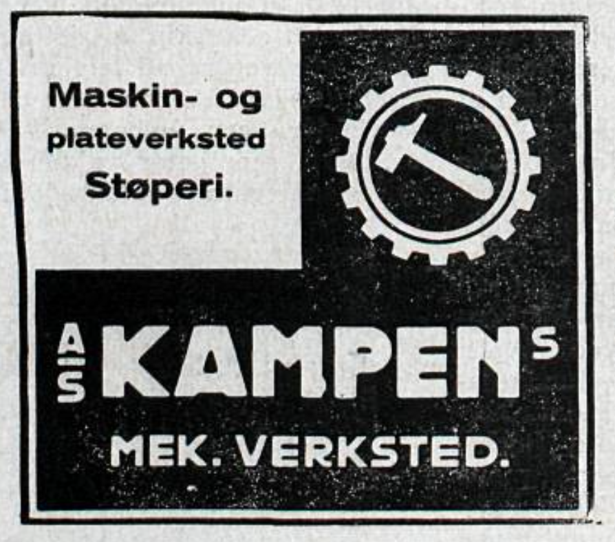 | nåværende | 19. feb. 2018 kl. 17:44 | 894 × 788 (1,04 MB) | Toro Andersen (diskusjon | bidrag) | Logo Kampen Mekaniske Verksted 1933 |