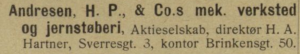 A/S H. P. Andresen & Co., mek. verksted og jernstøperi. H. P. Andresen & Cos Mekaniske Værksted og Jernstöberi