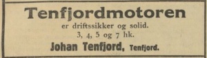 Motoren produsert ved Johan Tenfjord Mek. Verksted var en liten 2-takt glødehodemotor på 3HK. Se video av motoren her. (Nyere forskning viser at de reklamerte for 3, 4, 5, ot 7 HK motorer)
