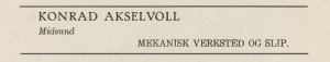 Produserte motorer på Midsund i Møre og Romsdal. Han startet verkstedet i 1918 og sluttet i 1945. Ifølge flere kilder skal det ha blitt produsert ca 25 stk. 2-takt glødehodemotorer på 6 HK.