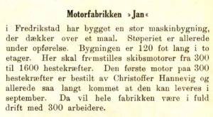 (1919) Artikkel om Motorfabrikken Jan - NHST