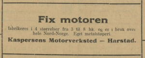 Grunnlagt av Karl Kaspersen (1871-1947) i Harstad sent på 1910-tallet. Produksjon av motorer tok slutt rundt 1940.