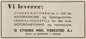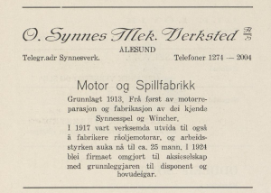 Ålesund. Grunnlagt i 1913 av Ole Synnes, først som produsent av kombinasjons-spill, og som et reparasjonsverksted. De begynte med fabrikasjon av en råoljemotor i 1917. Bedriften gikk fra et personlig firma til et AS i 1924. De oppgir at de produserte motorer fra 4 til 200 HK.