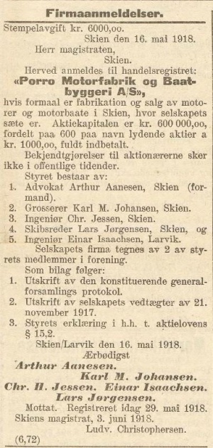 Motorfabrikken Porro, eller Porro Motorfabrik & Baatbyggeri A/S, i Skien, stiftet ut fra Karl M. Johansen AS, som leverte mindre luksusbåter og motorer.