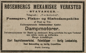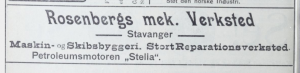 Rosenberg stilte ut en motor på 9 HK ved den tekniske utstillingen i Bergen i 1910. I merkeregisteret fra 1922 finnes det registrert 9 fartøy med Stella-motor.