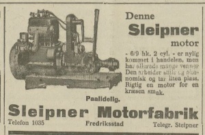 Sleipner ble etablert i Sarpsborg i 1908 av Ole Klemsdal og Hans Johansen. De 40 første motorene ble laget her.