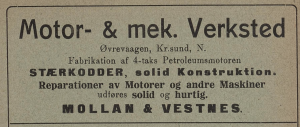 Startet i 1910, de første årene produserte fabrikken 4-takt glødehodemotorer, både 1- og 2-sylindrede modeller. Senere gikk de over til kun 2-taktsmotorer, frem til avvikling av motorproduksjon i 1946.