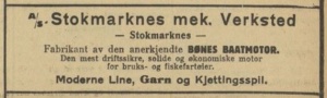 A/S Stokmarknes mek. Verksted ble stiftet 3. oktober 1916, med formål om å drive mekanisk verksted og patentslipper, båtbyggeri, og støperi. I 1918 kjøpte de opp Bønes verft og motorverksted for 85 000 kroner. Alle arbeiderne og maskiner ble overflyttet til Stokmarknes mek, og Anton Paulsen ble etterhvert verksmester. Etter det vi har klart å finne ut, ble de siste motorene støpt i 1935.